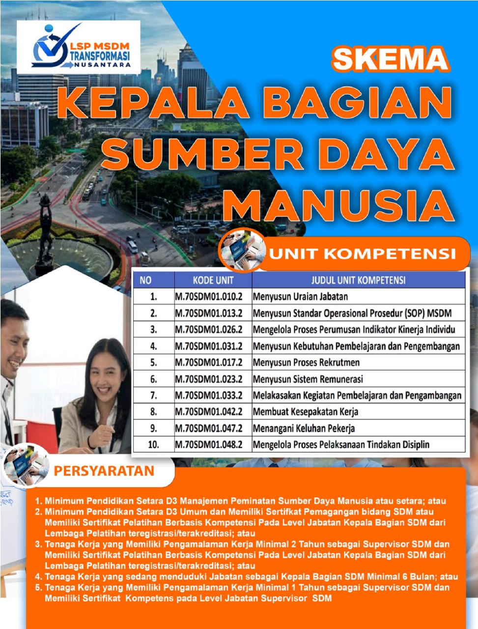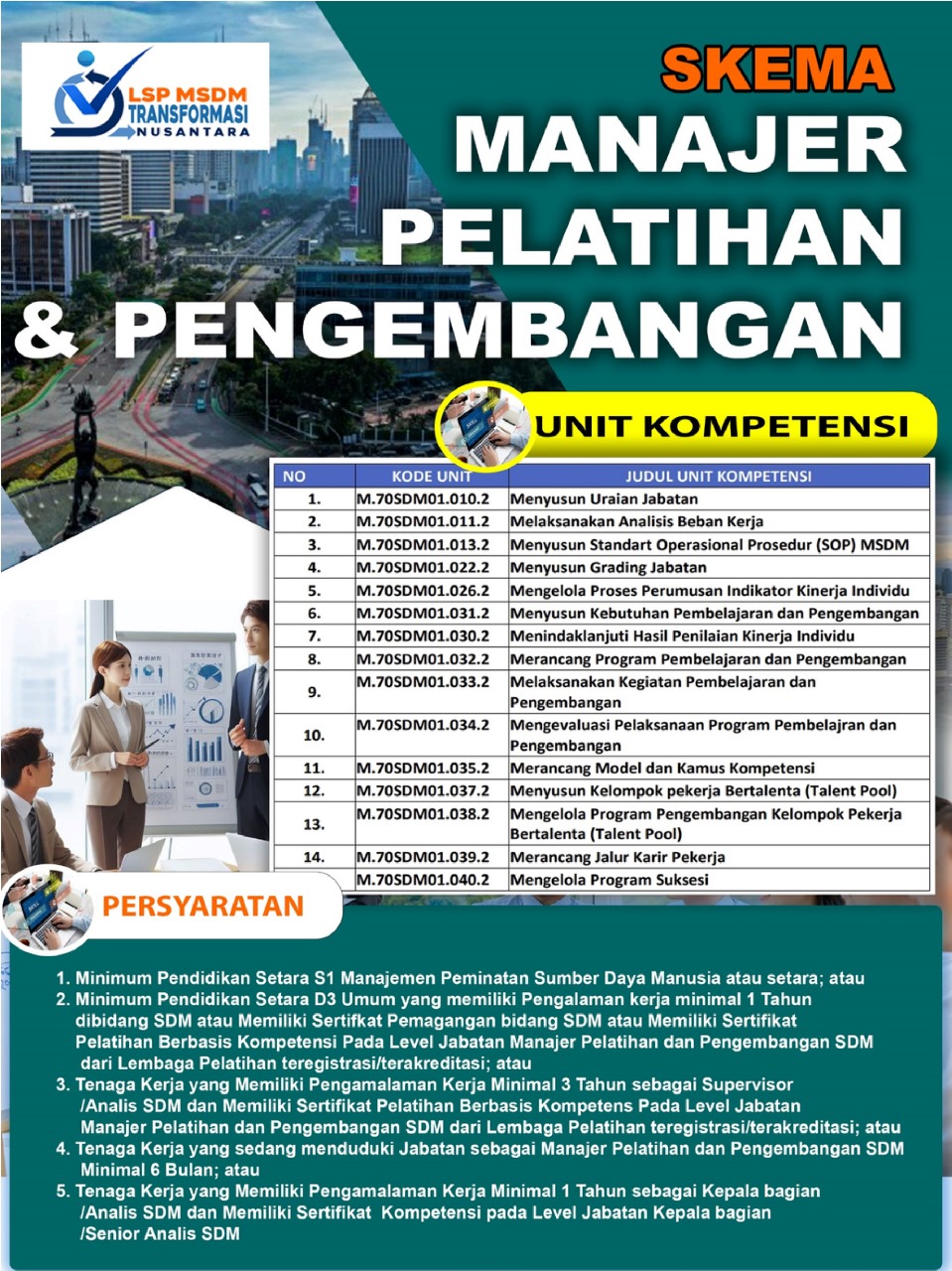 Dalam AEC (Asean Economic Community) yang berlaku sejak 2015 saatnya melakukan pembenahan sistem pembinaan sumber daya manusia yang berorientasi pada kebutuhan dunia kerja sehingga tenaga kerja kita diakui kompetensinya baik di dunia industri nasional maupun internasional, terutama di bidang Manajemen Sumber Daya Manusia. Hal ini sejalan dengan Keputusan Menteri Ketenagakerjaan RI No. 115 Tahun 2022 Tentang Pemberlakuan Wajib Sertifikasi Kompetensi Kerja Bagi Tenaga Kerja Bidang Manajemen Sumber Daya Manusia (SDM)