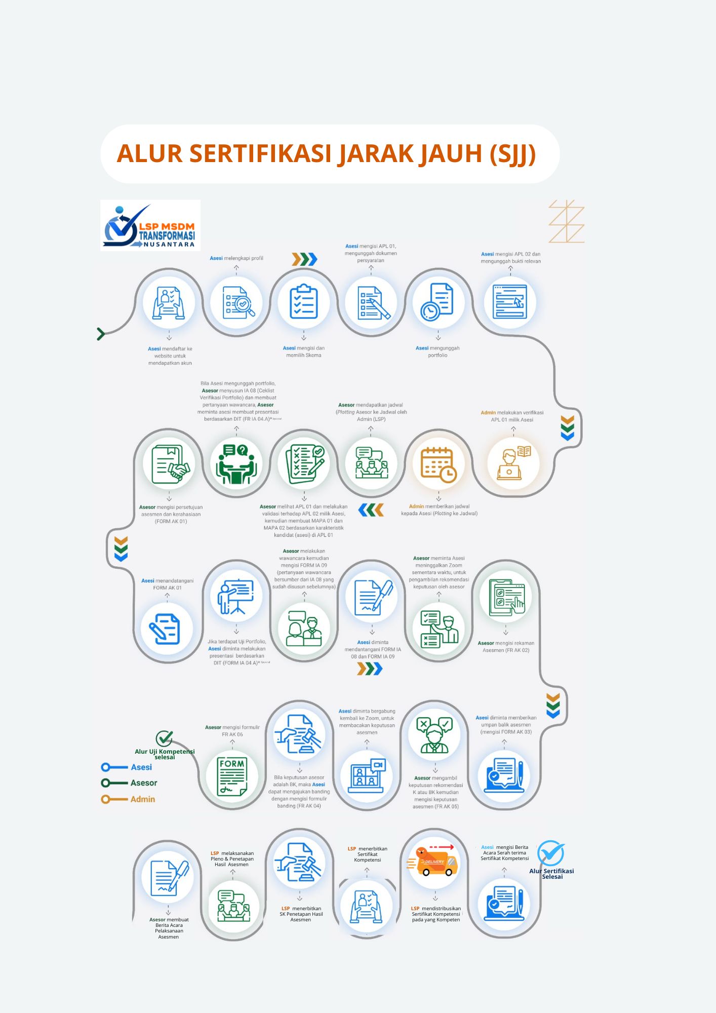 LSP MSDM Transformasi Nusantara mempunyai tugas mengembangkan standar kompetensi, melaksanakan uji kompetensi, menerbitkan sertifikat kompetensi serta melakukan akreditasi Tempat Uji Kompetensi. Untuk memastikan dan menjamin mutu di LSP MSDM Transformasi Nusantara, berpedoman pada Acuan Normatif persyaratan Pedoman BNSP 201, 202. 206. 208, 210 dan ISO 17024, sebagai acuan sistem manajemen mutu yang diterapkan di LSP MSDM Transformasi Nusantara.